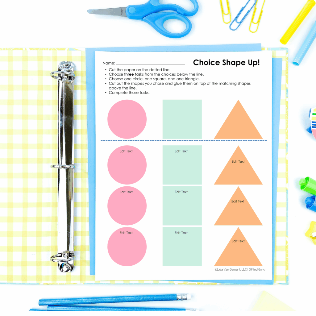 Feel free to adapt it in whatever way works for your kids, your classroom, or your home. Change the shapes, adjust the number of choices, or modify the directions. Do whatever helps you harness the power of reasonable choice.